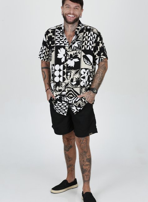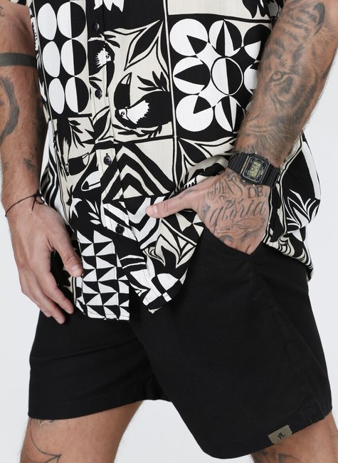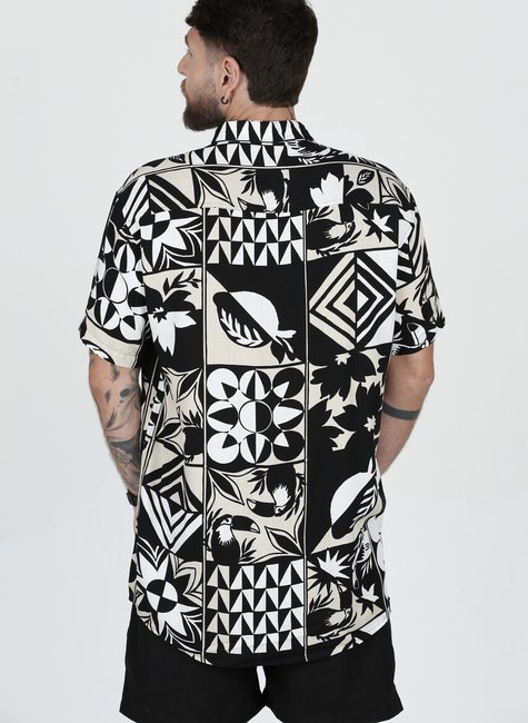 A camisa de botão gola padre Mosaic é uma peça que une arte, estilo e sofisticação. Seu destaque está na estampa única, que combina triângulos, círculos, folhas e tucanos, criando um mosaico visual moderno e cheio de personalidade. Cada detalhe da estampa traz equilíbrio entre formas geométricas e elementos da natureza, transformando o blusão em um verdadeiro ícone de estilo.