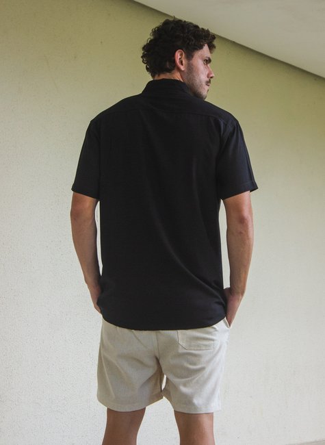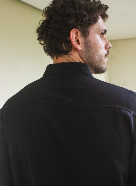 Com gola padre (Henley) e botões frontais discretos, essa camisa combina elegância e estilo descomplicado, ideal para looks casuais ou ocasiões que pedem um toque de requinte.