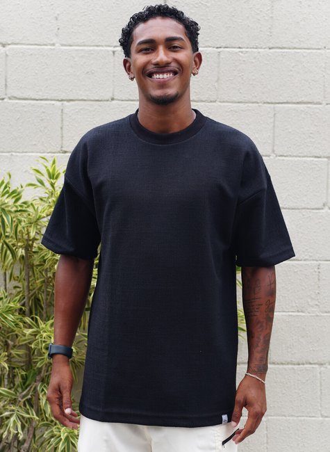 A camiseta oversized Eclipse é a união perfeita entre estilo, autenticidade e sofisticação. Desenvolvida em tricô, sua textura diferenciada valoriza o visual e transforma uma peça básica em um item exclusivo. O tom preto intenso transmite força e versatilidade, enquanto o corte oversized garante caimento moderno e liberdade de movimento.