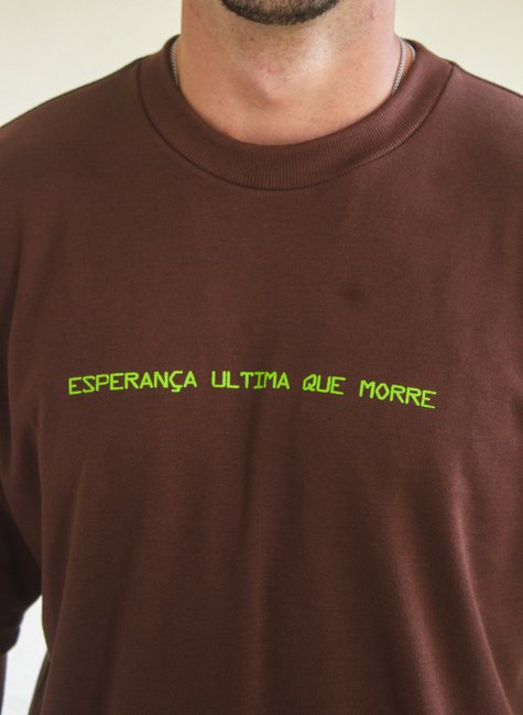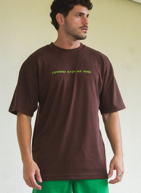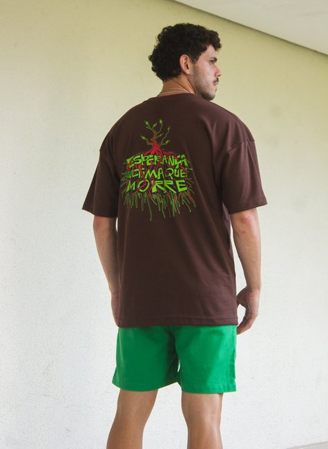 A Camiseta Oversized “Esperança, a Última que Morre” carrega uma mensagem profunda e simbólica. Na cor marrom, representa conexão com a terra e com o essencial, enquanto a estampa de árvore nas costas simboliza força, renascimento e resistência — um lembrete de que, mesmo nas tempestades, a esperança continua de pé.