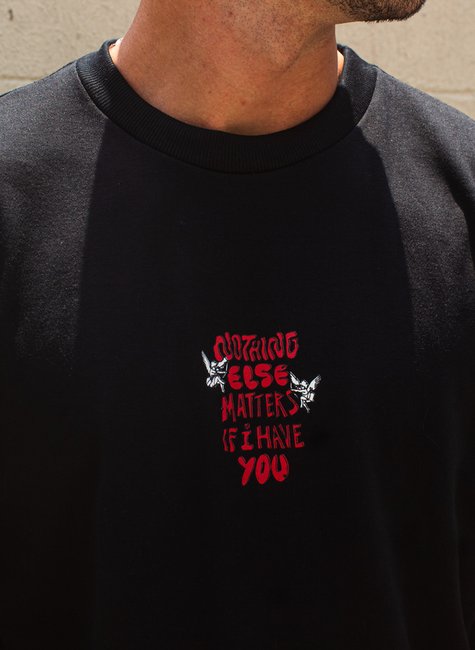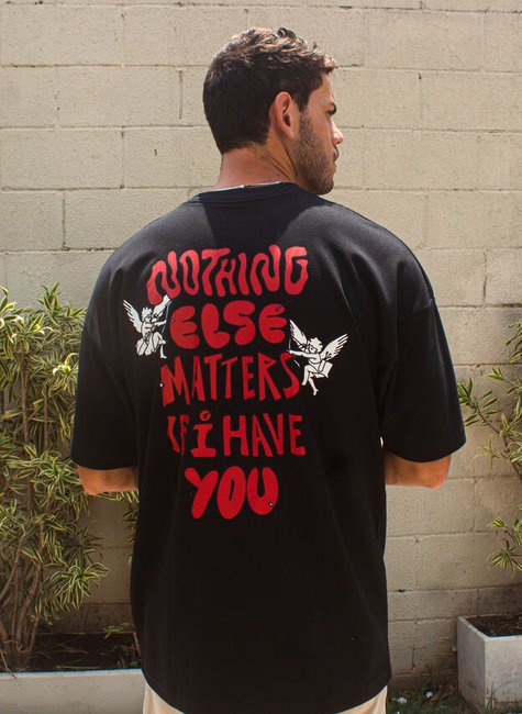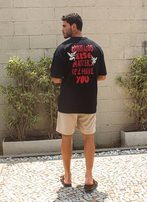 A Camiseta Oversized Preta “Nothing Else Matters If I Have You” traduz sentimento, conexão e intensidade em uma frase que fala direto ao coração. Inspirada na essência livre e emocional da Vento dos Mares – o sopro que te veste, essa peça carrega a mensagem de que, quando se tem o que importa, todo o resto se torna detalhe.
