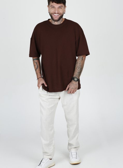 A Camiseta Oversized Tricot é a escolha perfeita para quem busca autenticidade, estilo e conforto em uma só peça. Com textura diferenciada, resultado do tricot trabalhado em alto padrão, ela entrega toque suave, caimento único e aparência sofisticada, tornando-se uma peça de exclusividade no seu guarda-roupa.