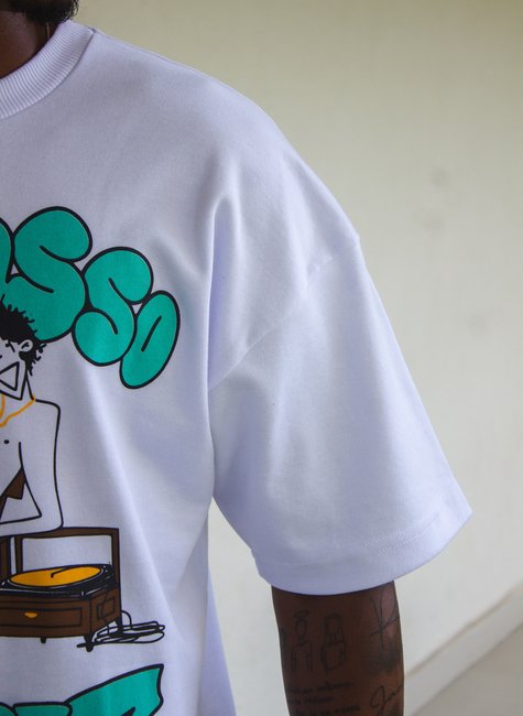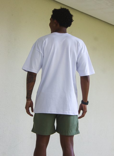 O corte oversized proporciona liberdade de movimento e um visual moderno, ideal para composições casuais ou urbanas. O branco clássico combina com tudo, valorizando o minimalismo e a versatilidade do guarda-roupa masculino.