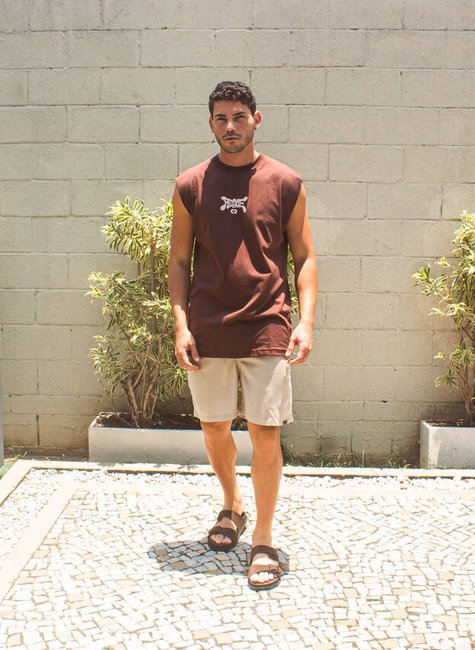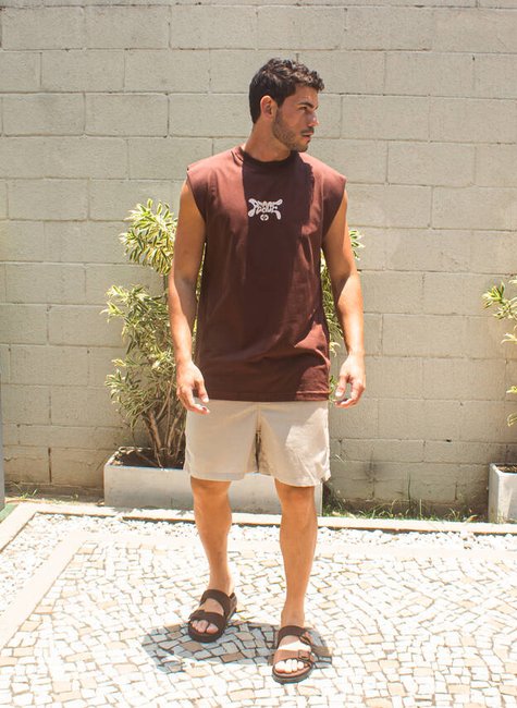 Com modelagem machão, confortável e cheia de atitude, ela é perfeita para dias de sol, treinos, praia, rolês e momentos de conexão consigo mesmo. A cor marrom traz equilíbrio, sofisticação e um toque natural ao visual, enquanto a escrita “Peace” reforça o lifestyle de quem escolhe viver com calma, propósito e boas energias.